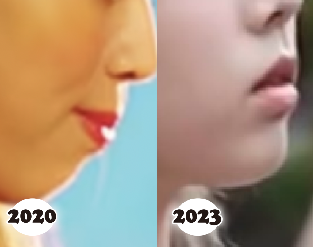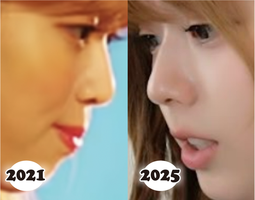2021年と2025年の鼻を比較してみると、鼻筋の高さやラインそのものは、実は大きく変わっていないことが分かります。