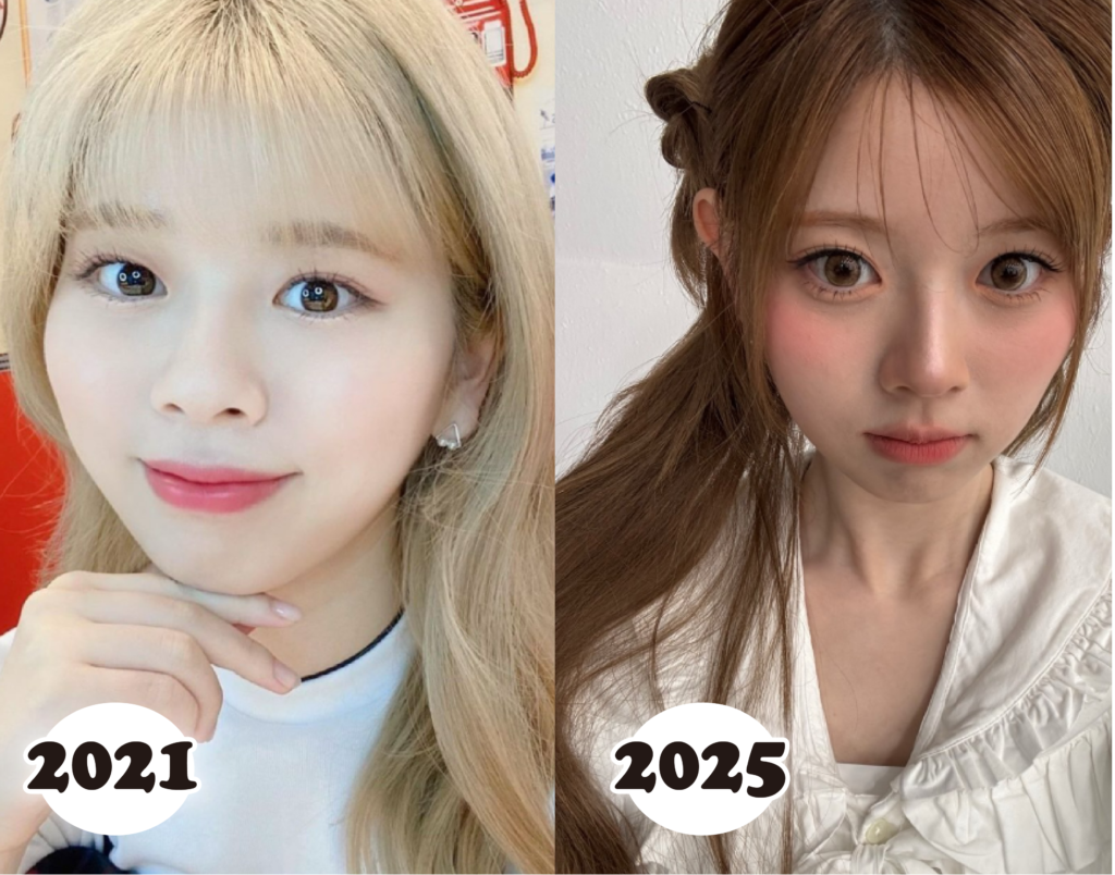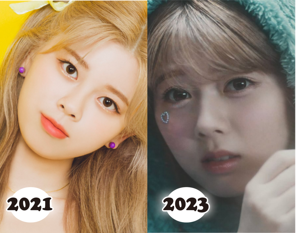 デビュー3年目を迎える2022年あたりからメイクもより作り込まれたものになり、少しずつ垢抜けていくのが分かります。